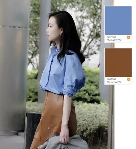 电视里,朱锁锁蓝色衬衣与棕色皮裙的搭配,令人拍案叫绝,成熟稳重却又热辣撩人,很符合剧中人物性格的设定。这两个颜色在色谱上就是属于互补色,有强烈的对比,鲜明又跳脱。如果不想在人群中,变成发光源,想要低调的出众,也有办法,只需要降低互补色的明度,就能看起来更加柔和。