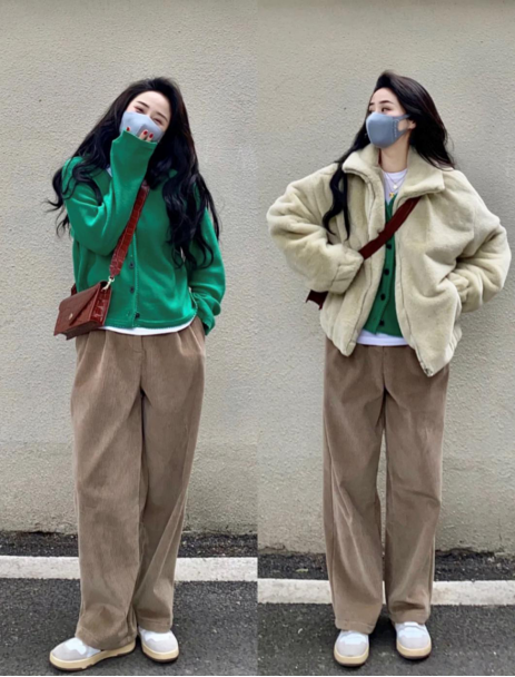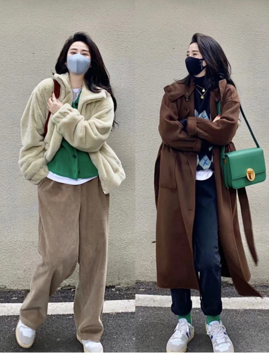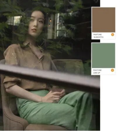 棕色和绿色是互补色系,搭配出的感觉,不惊艳却很特别,仿佛森林里眼睛纯澈的小鹿,充满灵气。绿色的色值很多,尽量选择低饱和度和明度,能够穿出略带复古的味道。