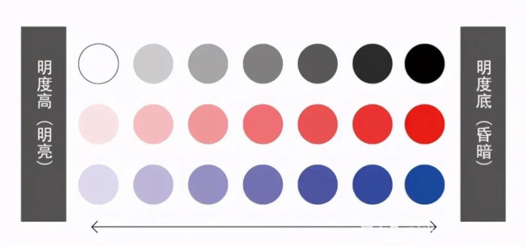 一句话总结:明度越低,颜色看起来就越接近黑色,相反,明度越高,色彩就会越接近白色。