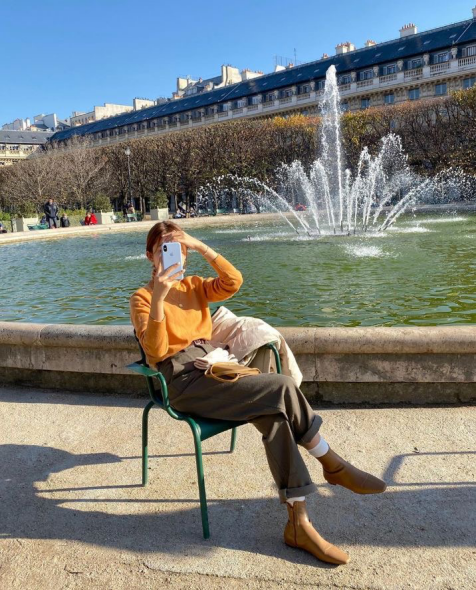 配饰点缀,也是时髦精们常用的搭配方法。一身同色系,搭配撞色的帽子、包包,也是点睛之笔。亮点不宜过多,一般来讲,1-2处即可,帽子和包包也最好同色呼应,避免出现焦点混乱的情况。