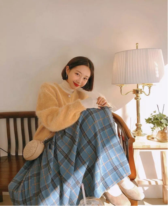 如果上身是纯色,那么下半身就可以搭配一些元素,比如格子或者其他花纹,让搭配更加有层次感,也不失和谐。需要注意的是,花纹不要过于复杂,紧致有序为好,有花纹的点缀,衣服颜色可以降低饱和度。