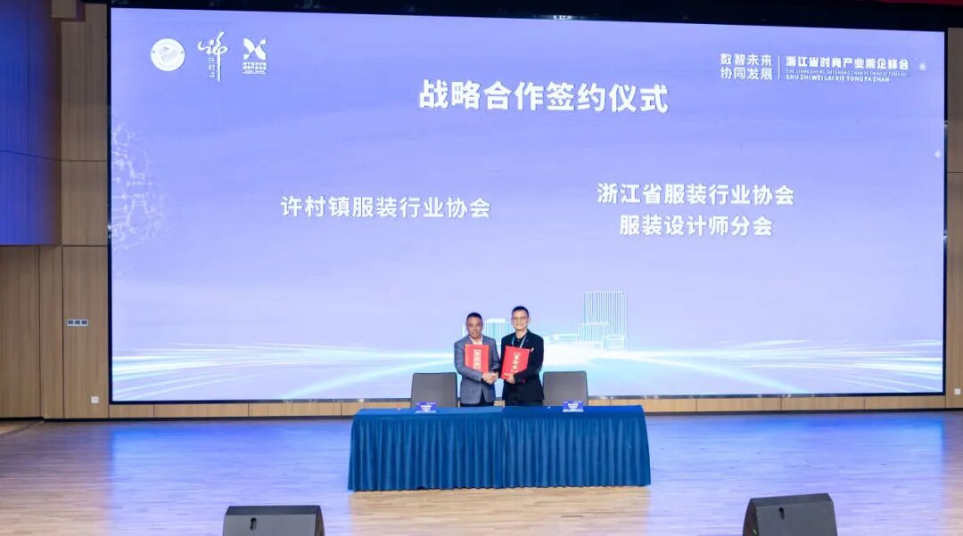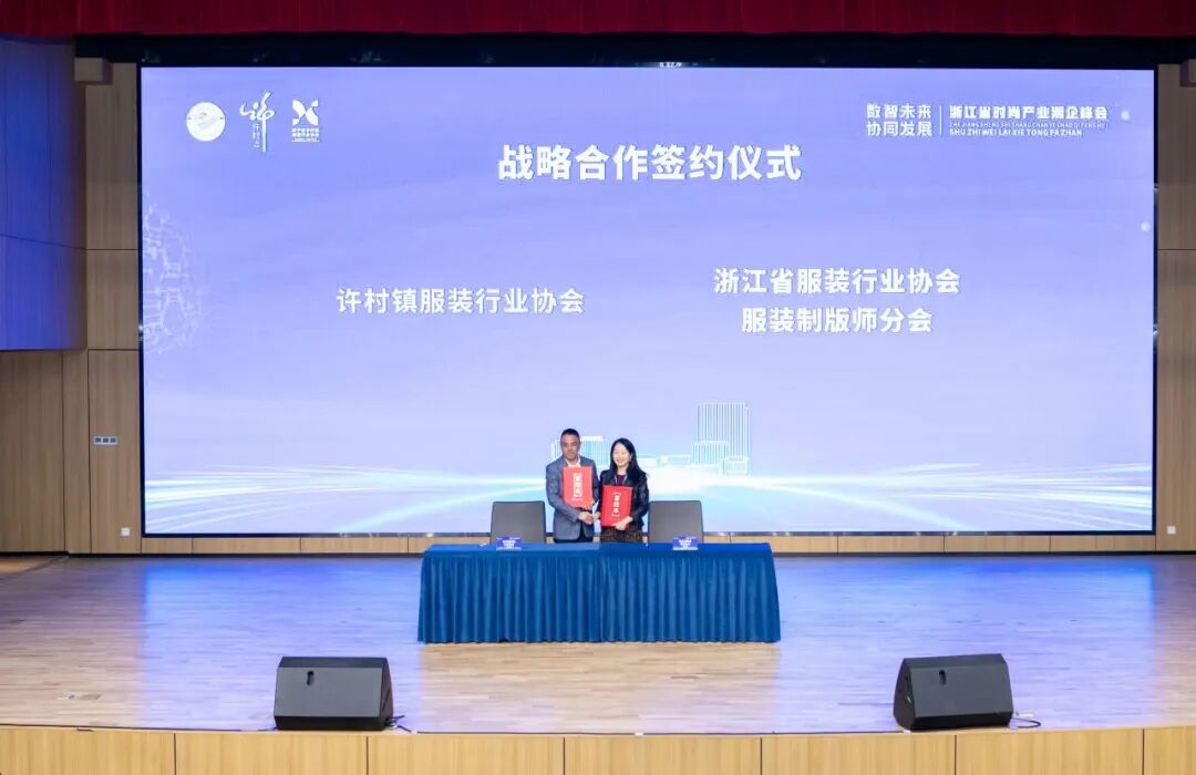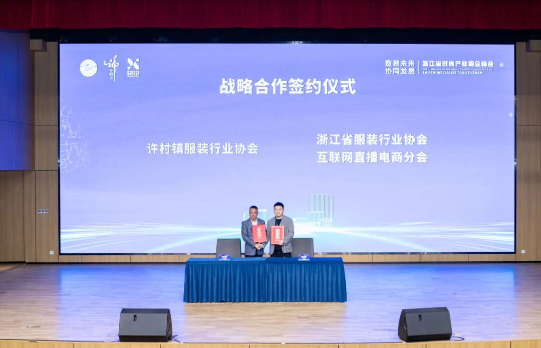大会上,海宁市许村镇服装行业协会分别与浙江省服装行业协会设计师分会、服装制版师分会和互联网直播电商分会进行了战略合作的签约仪式。未来,三大分会将从产品创新、设计交流、高技能人才培训、电商直播扶持等方面,为当地服装企业提供更多层次、更加丰富的专业化服务,为许村服装企业搭建公共服务平台,助力企业行稳致远。