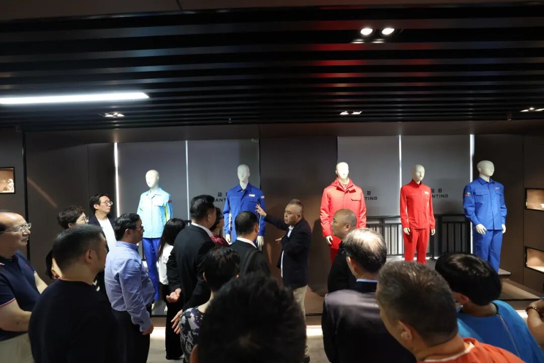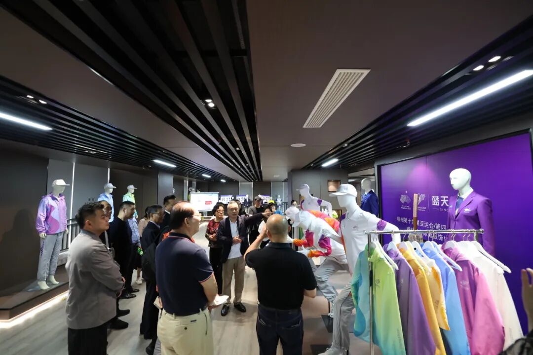 会议期间,与会会长们在协会副会长、浙江蓝天制衣有限公司董事长郑志恩的陪同下,参观了公司的产品展示中心,听取蓝天制衣的发展历程和产品介绍。浙江蓝天制衣有限公司是本届亚残运会制服供应商。