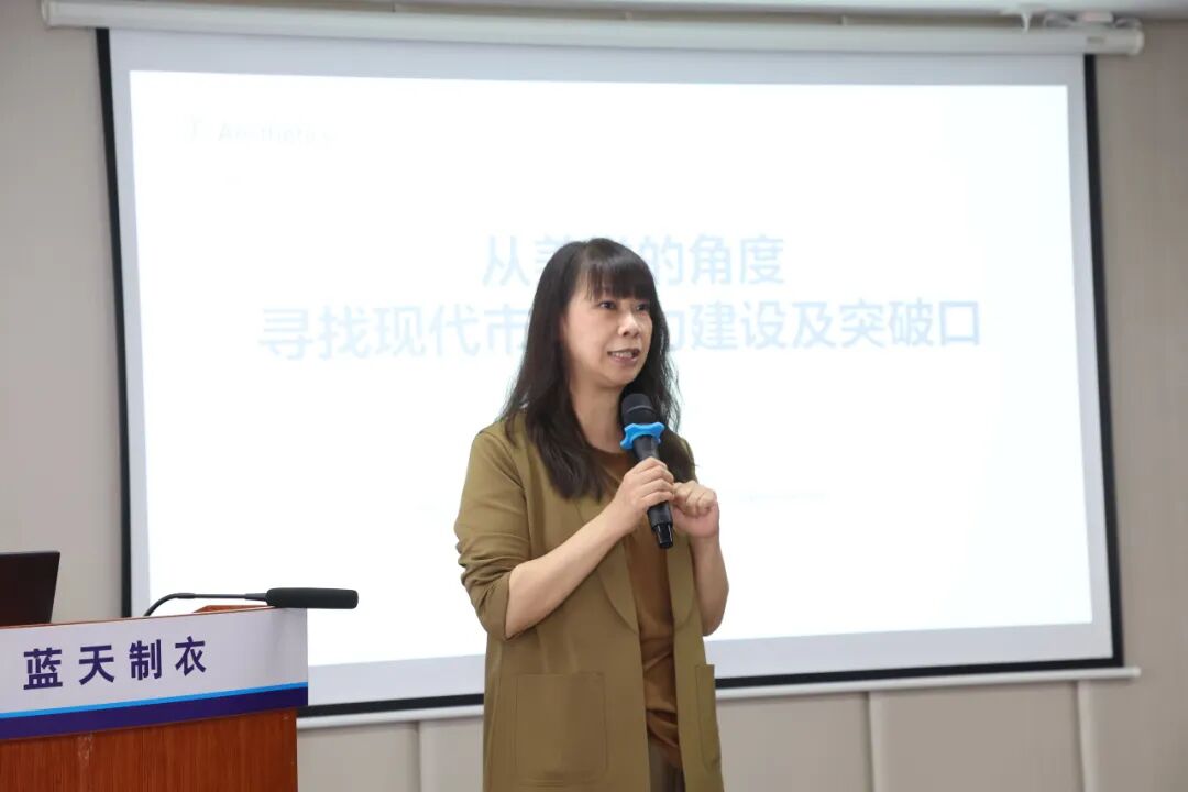 会议还邀请了东华大学郑嵘教授作主题为《从美学角度寻找现代市场能力建设及突破口》的分享。郑教授从多元化角度阐述美学,她提到:品牌需要用商业美学思维做战略核心重点,打开困顿局面。以美学思维指导商业创新,以用户洞察为本、数字化变革为技术手段,使品牌、消费者、产品三维一体融合,带动产品创新;另一方面要把美作为第一生产力,服务人、愉悦人,带给消费者更好的精神层面的满足,这是市场去同质化的抓手,帮助品牌开拓新赛道。