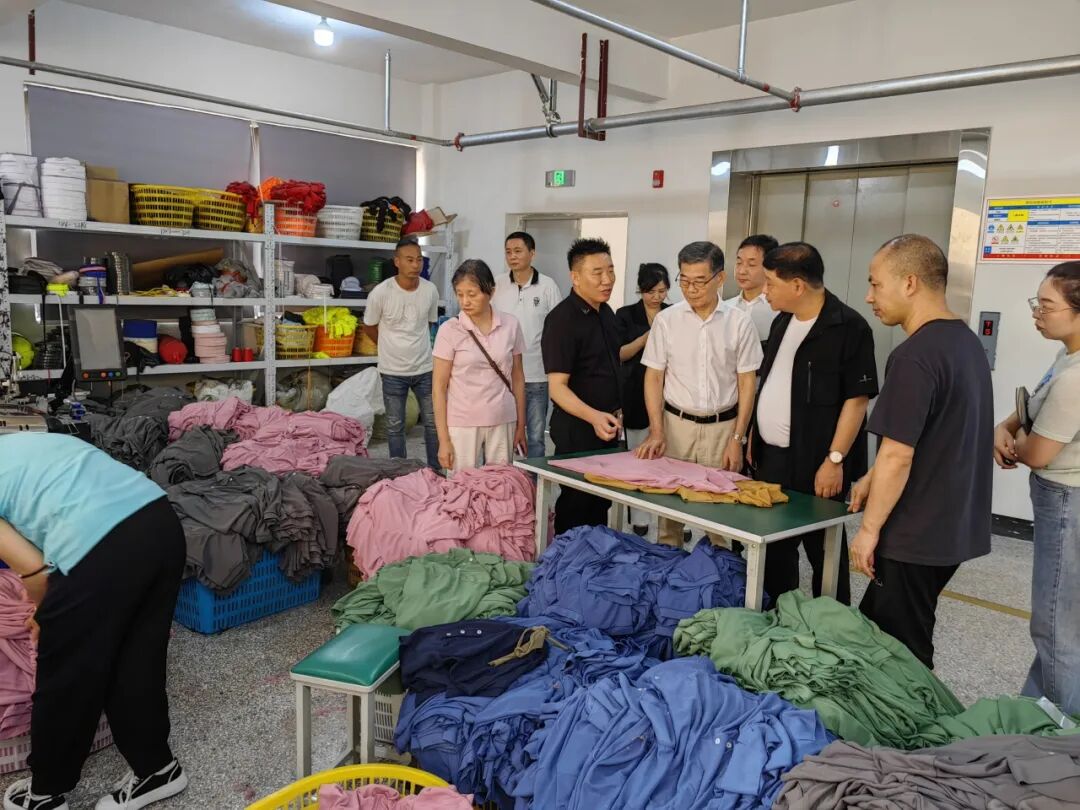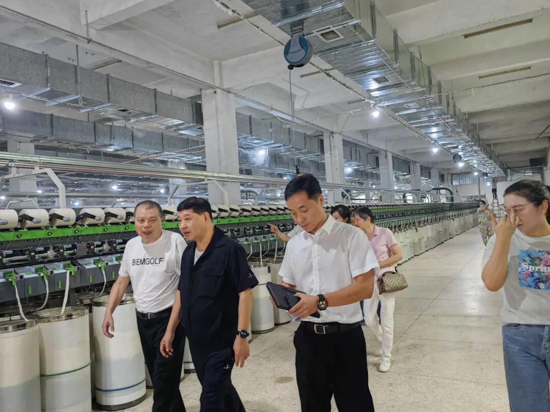考察苍南县宜山镇纺织服装产业。宜山镇,温州地区60个20亿规模以上产业重镇,再生纺织是该镇特色,运用成本价格优势,产品畅销国内外。