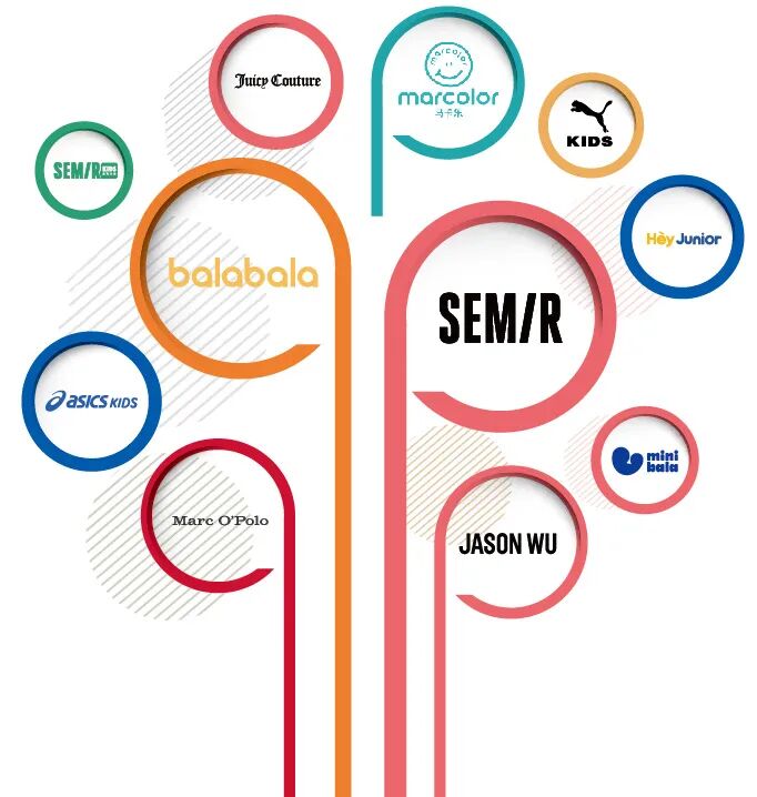森马是一家以品牌服装经营为主导产业的综合性民营集团公司,现已拥有森马、巴拉巴拉、马卡乐、MARCO'POLO、JasonWu、Juicy Couture、Hey Junior、Mini Bala、Asics Kids、Puma Kids等多个国内和国际知名品牌。