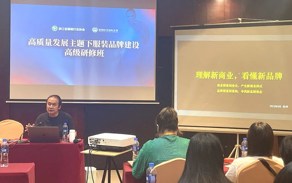8月10-12日,由浙江省人力资源和社会保障厅主办、浙江省服装行业协会承办的“高质量发展主题下服装品牌建设”高级研修班在杭州举办。此次高研班围绕 “品牌定位与设计、品牌策略、品牌创新路径、数字化品牌发展趋势、企业观摩交流”等几大版块开设相关课程,来自全省各地的服装企业高层、品牌负责人、设计师等相关管理人员共计40余人参加了此次研修培训。