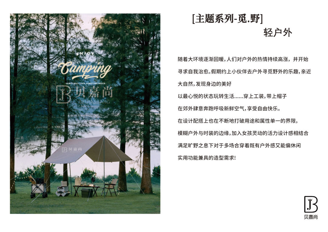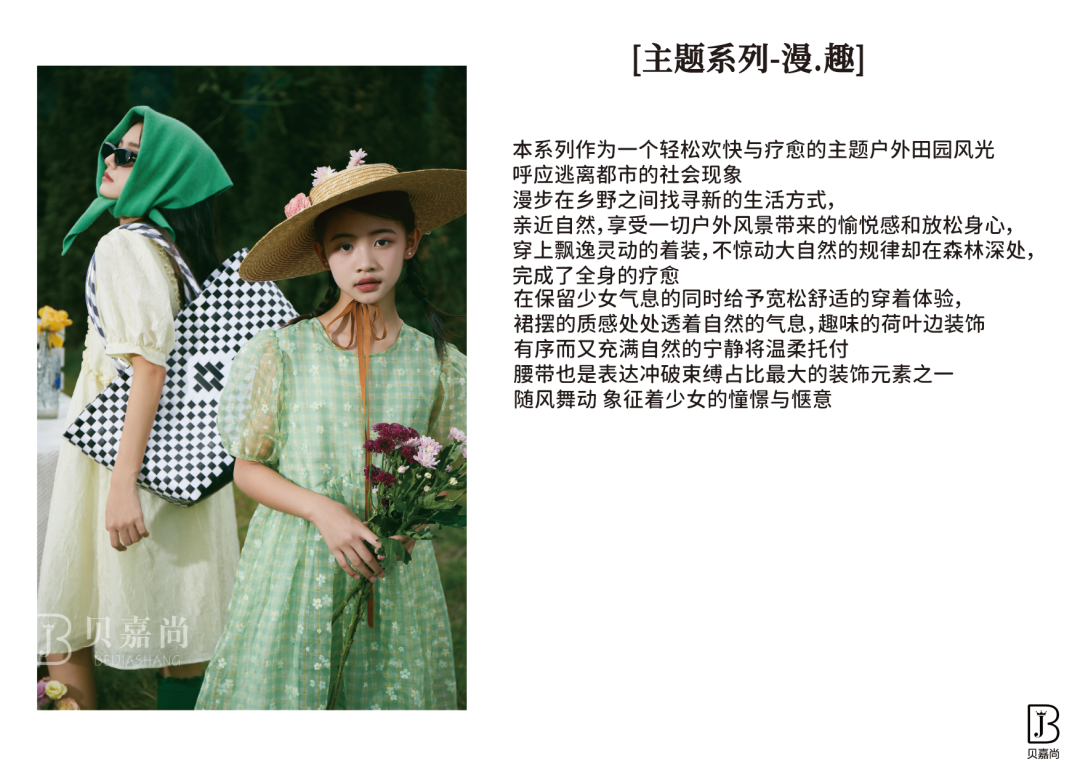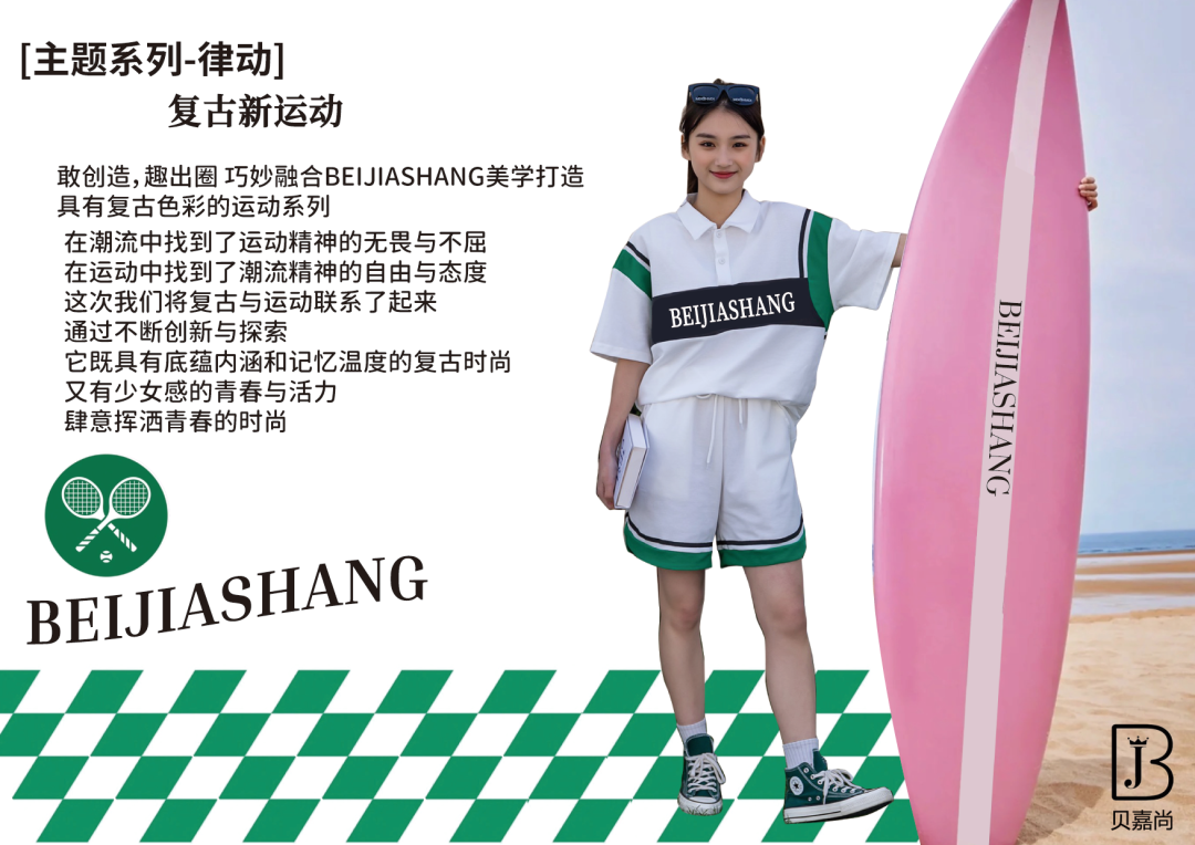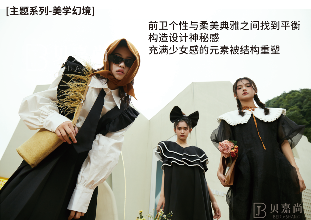郑:贝嘉尚青少年装品牌。顾名思义,“嘉”,美也,善也;“尚”,时尚,优雅。始创于2013年,是专注于自然舒适时尚的女大童品牌。公司坐落于中国童装之都——织里,集研发、生产、销售为一体,以“不被定义的美”为宗旨,致力于让青少年展现美的多元化,在服装中找到真正的价值,取悦自己,活出本真。