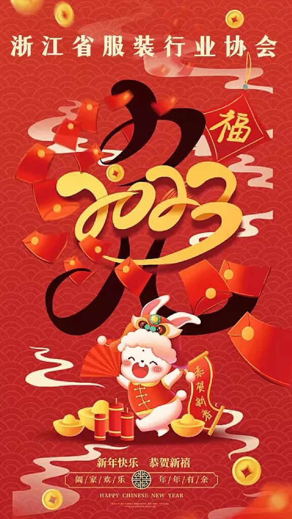 爆竹声声辞旧岁,金兔呈祥迎新春!值此新春佳节之际,浙江省服装行业协会向各位致以新年的祝福!感谢各级领导、会员单位对协会工作的大力支持!祝大家新年快乐,兔年大吉,大展宏“兔”,前“兔”似锦!