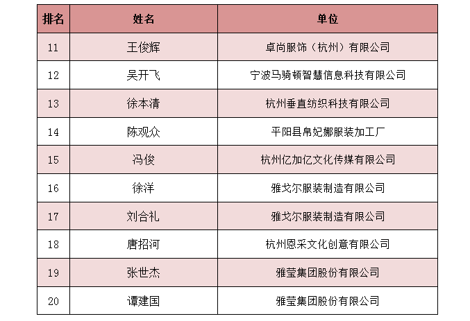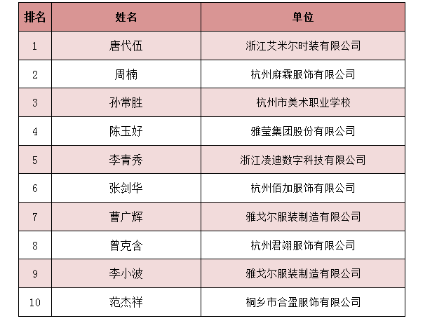 浙江省十佳服装制版师