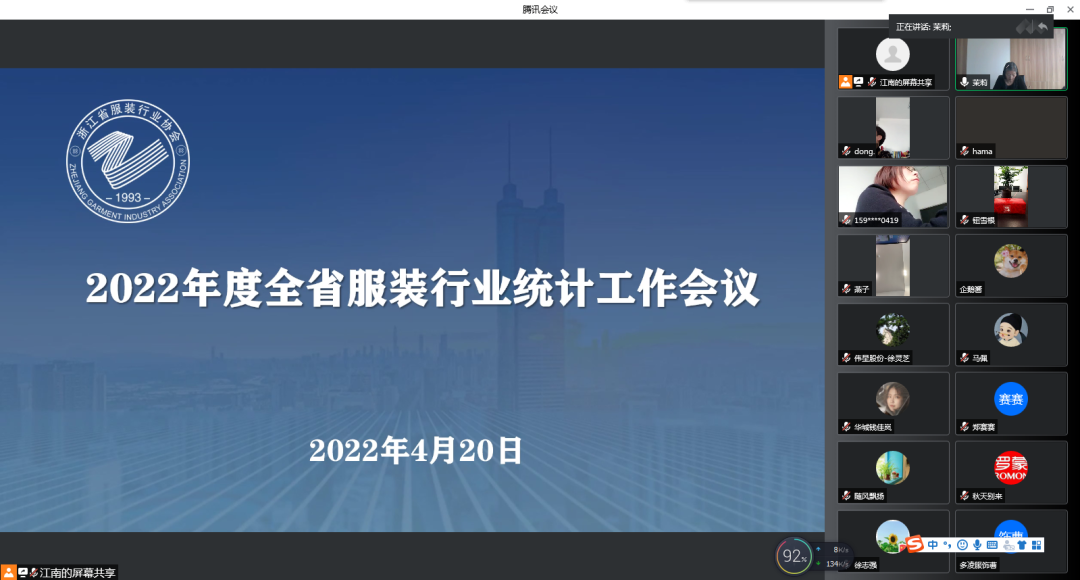 为了顺应统计变革新趋势,提高服装行业统计报表质效,开创统计工作新局面,本会于4月20日下午在线上召开2022年全省服装行业统计工作会议。各地协(商)会秘书处负责人及企业统计负责人等共计50余人参加了本次线上会议。