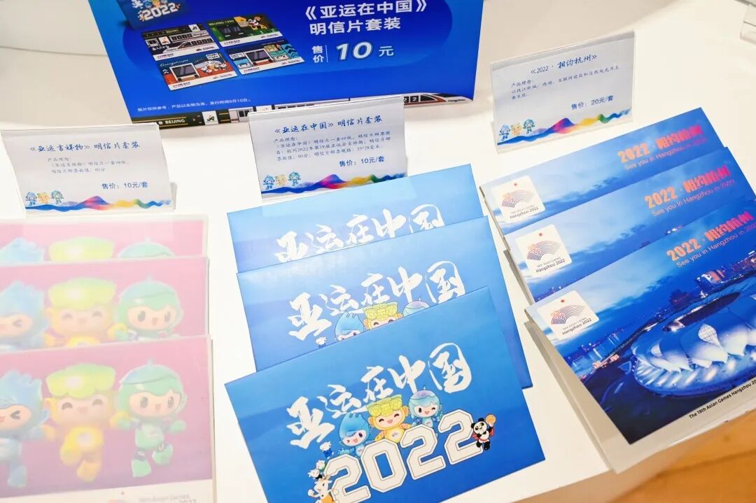 除了主题套装,三个品牌当天还各自发布了数款亚运主题文创精品,如万事利丝绸的“亚运主题”《智能闪充笔记本》、《环保印花袜》等全新创意产品以及以亚运吉祥物为设计主题的《喜琮天降》《好运莲莲》《良宸吉日》系列创意挂饰礼盒;中国邮政集团杭州市分公司的《杭州亚运会个性化邮票双连张》、《第19届亚洲运动会》会徽邮票金珍藏册、《亚运主题家乡包裹》等,浙茶集团的《狮峰江南茶宴》创意礼盒等,一股浓郁的“亚运风潮”即将席卷杭城。