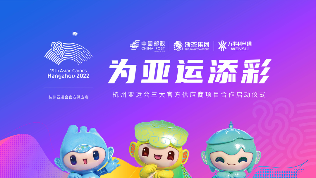 3月25日,中国邮政、浙茶集团、万事利丝绸三大杭州亚运会官方供应商率先联动,举行了“为亚运添彩”项目合作启动仪式。浙茶集团董事长兼总经理毛立民、万事利丝绸董事长李建华以及中国邮政集团杭州市分公司主要负责人、代表出席,并签署了项目合作协议。