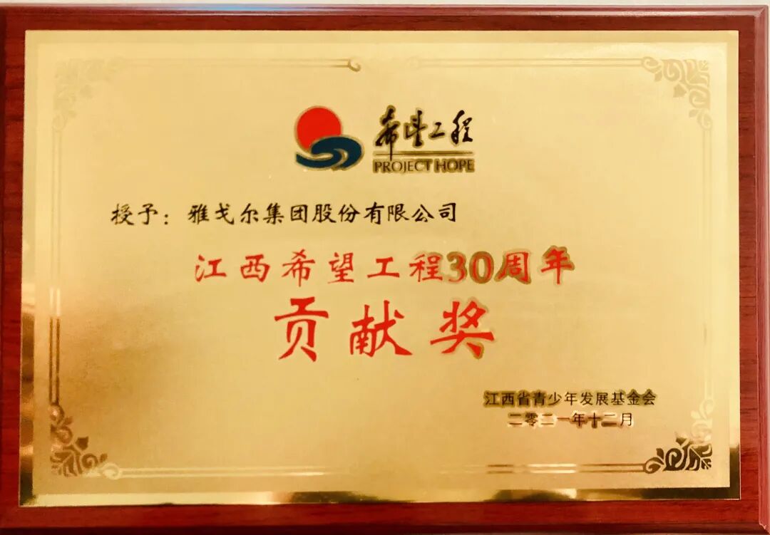 为纪念江西省希望工程实施30周年,12月29日,江西团省委、省青基会在南昌共同举办“提供新助力播种新希望”——江西希望工程30周年颁奖典礼暨捐赠仪式。江西省政协副主席汤建人出席并为获奖集体颁奖。协会副会长单位雅戈尔集团荣获“江西希望工程30周年贡献奖”。
