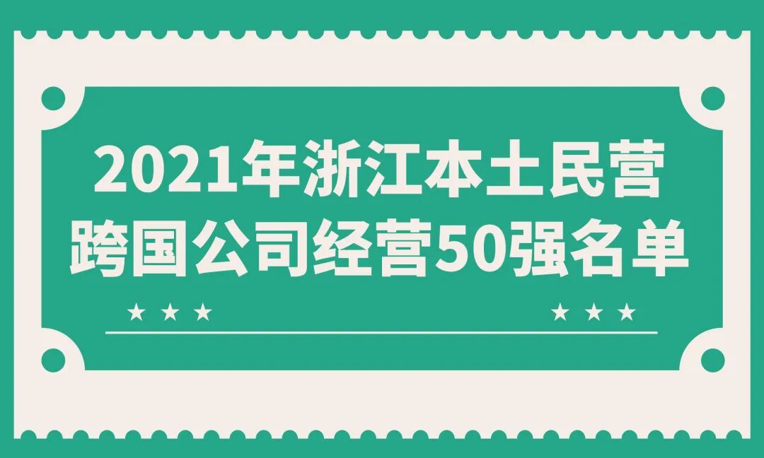 近日,在浙江省商务厅指导下,浙江省境外投资企业协会、浙江省之江跨国公司研究院联合发布了2021年浙江本土民营跨国公司经营50强榜单(以下简称“50强”)。协会会员:狮丹努集团股份有限公司、浙江健盛集团股份有限公司、宁波申洲针织有限公司上榜。