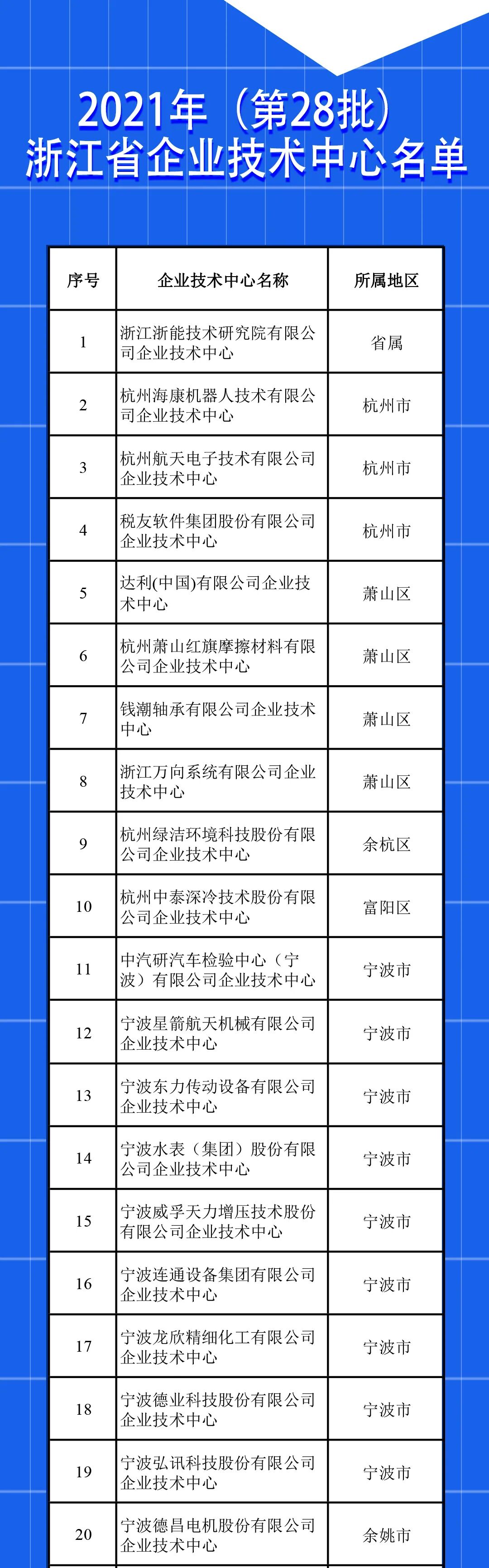 据悉,此次评选是根据《浙江省企业技术中心管理办法》(浙经信技术〔2019〕128号)和《关于组织开展2021年浙江省企业技术中心认定工作的通知》要求,由省经信厅牵头组织,经企业申报、各地推荐、第三方初评、专家评审和公示,最终认定了浙江浙能技术研究院有限公司企业技术中心等94家企业技术中心为2021年(第28批)浙江省企业技术中心。