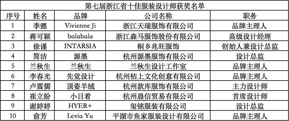 时尚历史上每一次重大的时尚潮流的诞生,背后都离不开时装设计师的推动。作为时尚行业的灵魂人物,设计师的发掘与成长对行业的发展至关重要。第七届浙江省十佳服装设计师评选在经过海选、面试、秀场发布等多个环节后,由7位专业评审综合计分,共有十位设计师表现卓越获此殊荣。