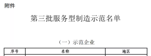 关于公布第三批服务型制造示范名单的通知