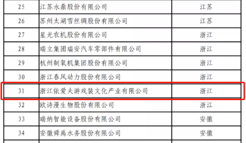 工业和信息化部公布的第三批服务型制造示范企业名单中,协会副会长单位浙江依爱夫游戏装文化产业有限公司榜上有名。