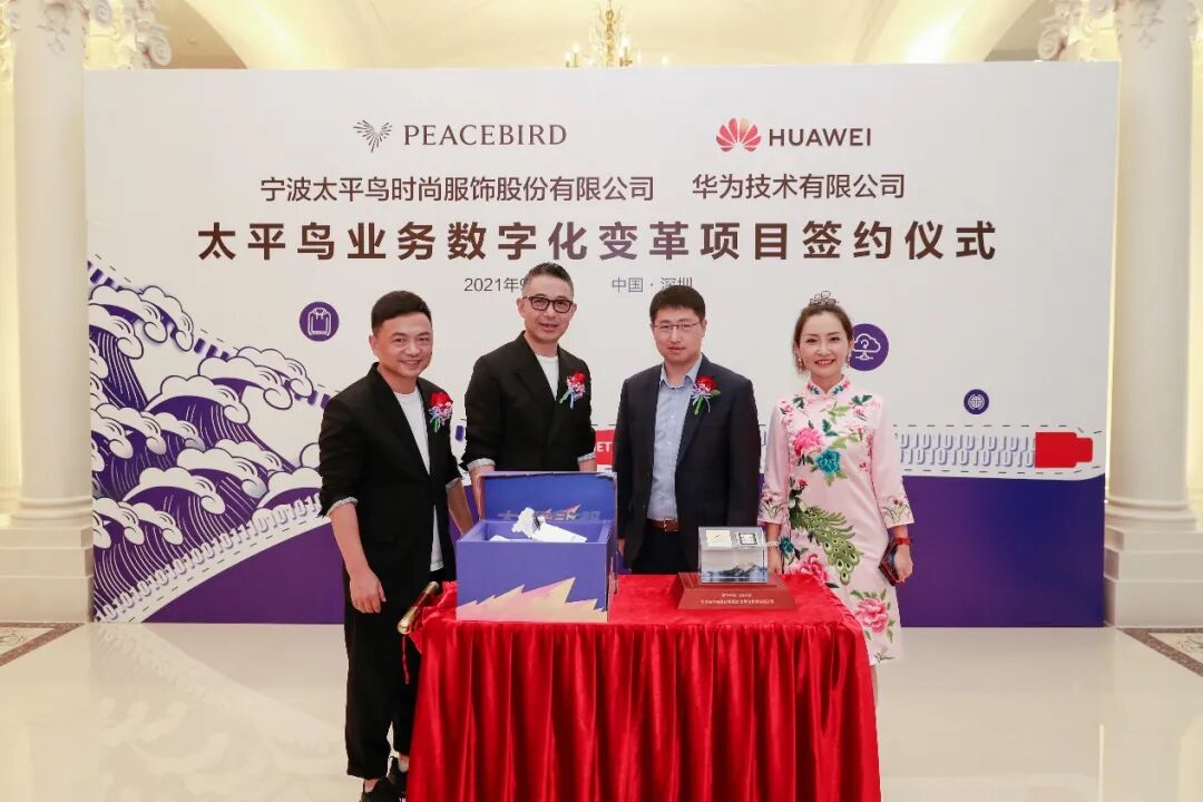 9月6日,宁波太平鸟时尚服饰股份有限公司(以下简称:太平鸟)正式携手华为技术有限公司(以下简称:华为),在华为深圳总部签署数字化转型变革项目合作协议。双方将在商品研发、品牌战略、市场营销等方面展开深度合作,共同推进品牌和产业的数字化转型,实现合作共赢、持续发展。