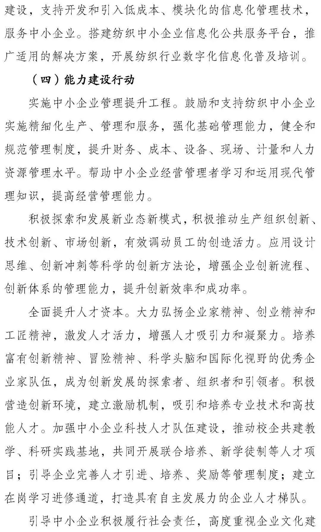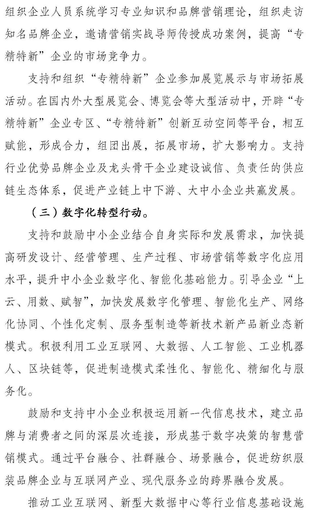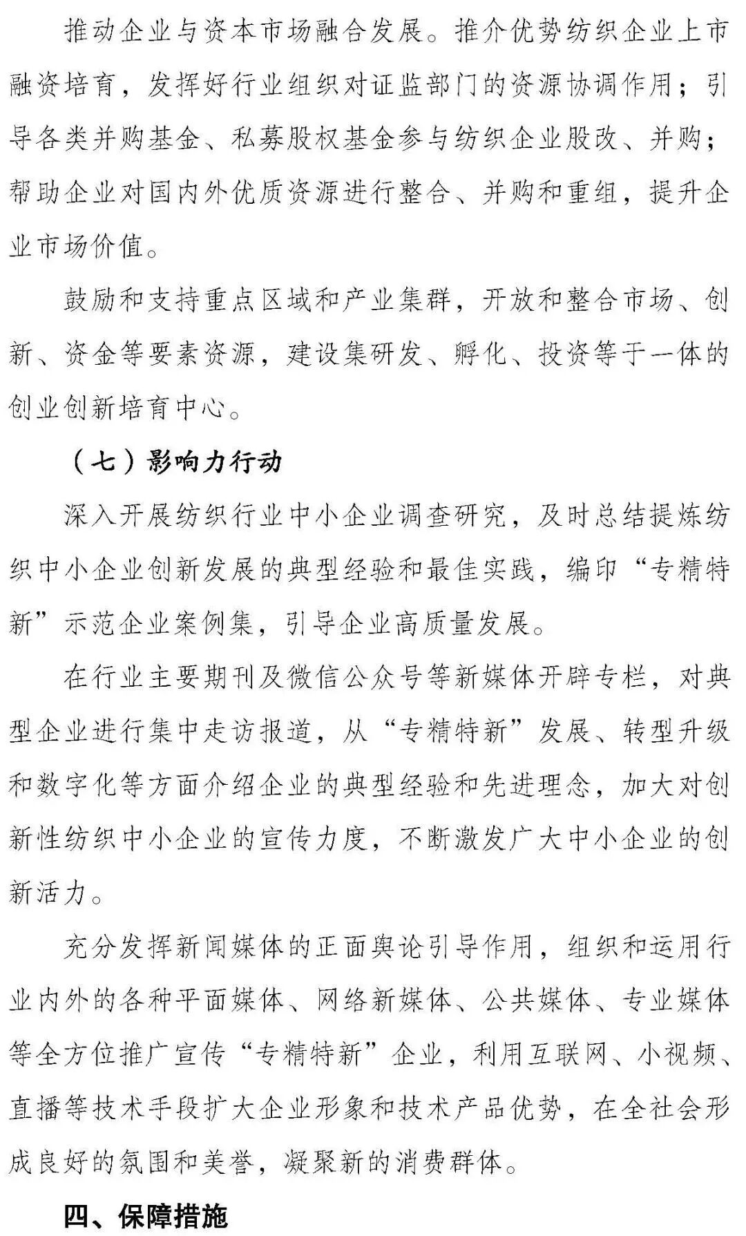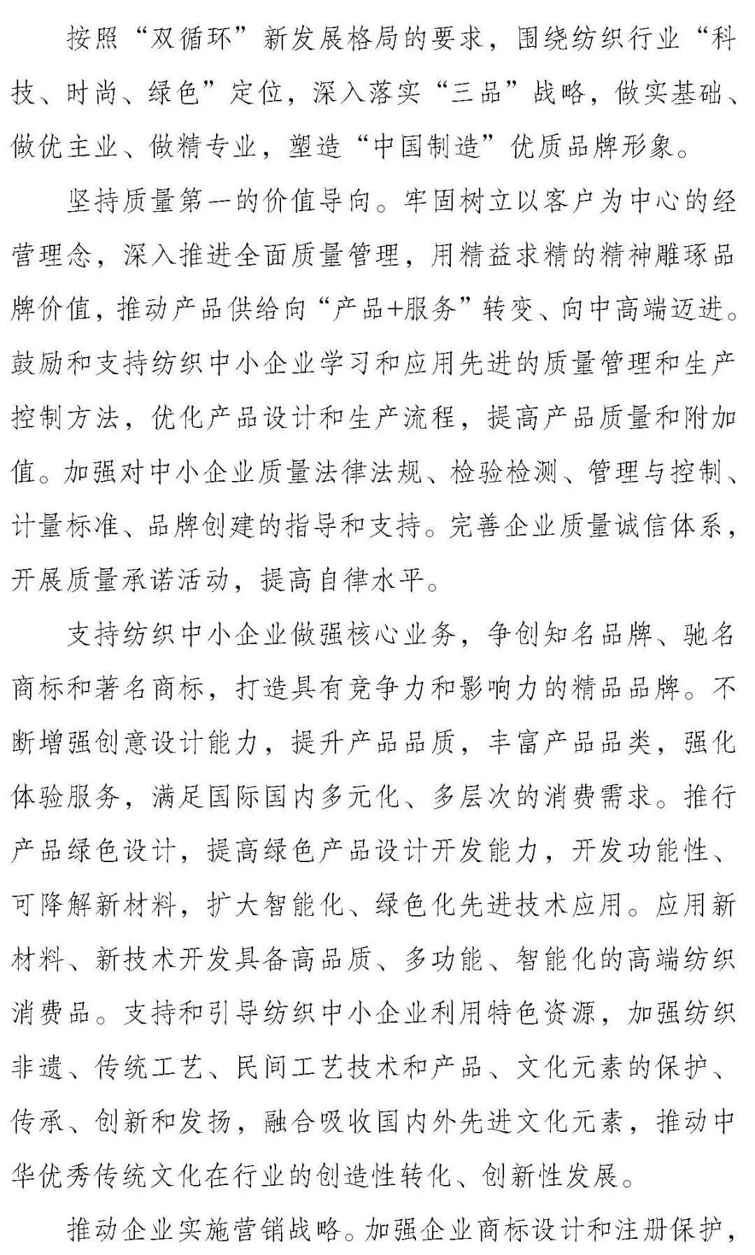 8月18日,中国纺织工业联合会行业发展部与科技发展部发布《“十四五”纺织行业中小企业“专精特新”发展行动方案》,旨在更广泛凝聚各方力量和共识,为行业中小企业的创新成长和高质量发展创造良好环境,支持和引导纺织行业中小企业走“专精特新”发展道路。