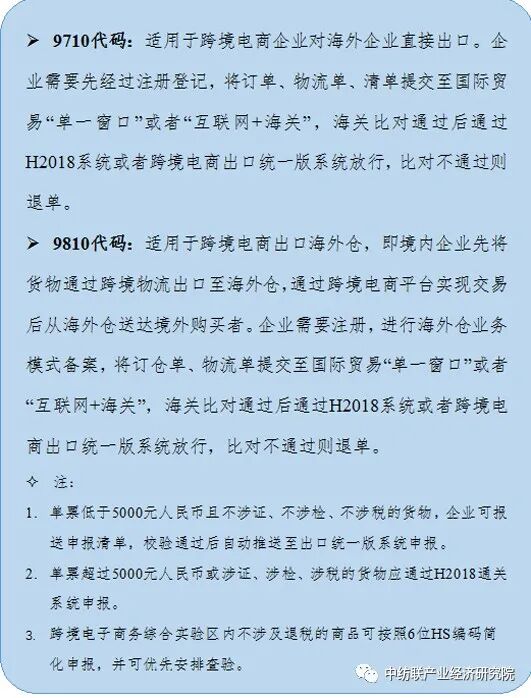 B2B是指境内企业通过跨境电商平台与境外企业达成交易后,通过跨境物流将货物直接出口至境外企业或海外仓,企业可根据自身业务类型选择海关监管方式代码“9710”或者“9810”向海关申报。2021年7月1日起,跨境电商B2B出口监管试点在全国海关复制推广。B2B跨境电商海关监管申报方式详见下表: