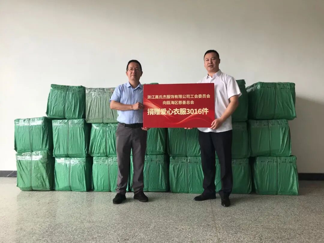 浙江高氏杰服饰有限公司向瓯海慈善总会捐赠夏装3016件,委托志愿者捐赠河南受灾地区。