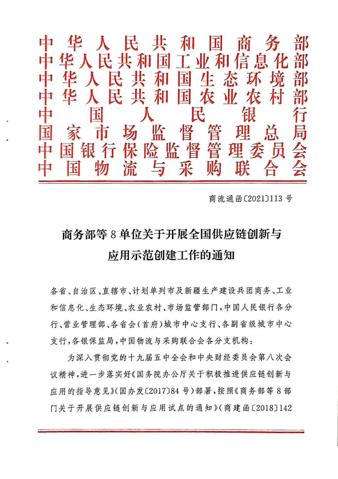 近年来,商务部坚决贯彻落实党中央、国务院决策部署,大力推进现代供应链创新发展。2018年,根据《国务院办公厅关于积极推进供应链创新与应用的指导意见》部署,商务部等8单位在全国55个城市、266家企业开展供应链创新与应用试点,取得显著效果,涌现了一批供应链新技术新业态新模式,培育了一批行业带动能力强的供应链核心企业,构建了一批整合能力强、协同效率高的供应链平台,现代供应链成为各地推动经济高质量发展的重要抓手。