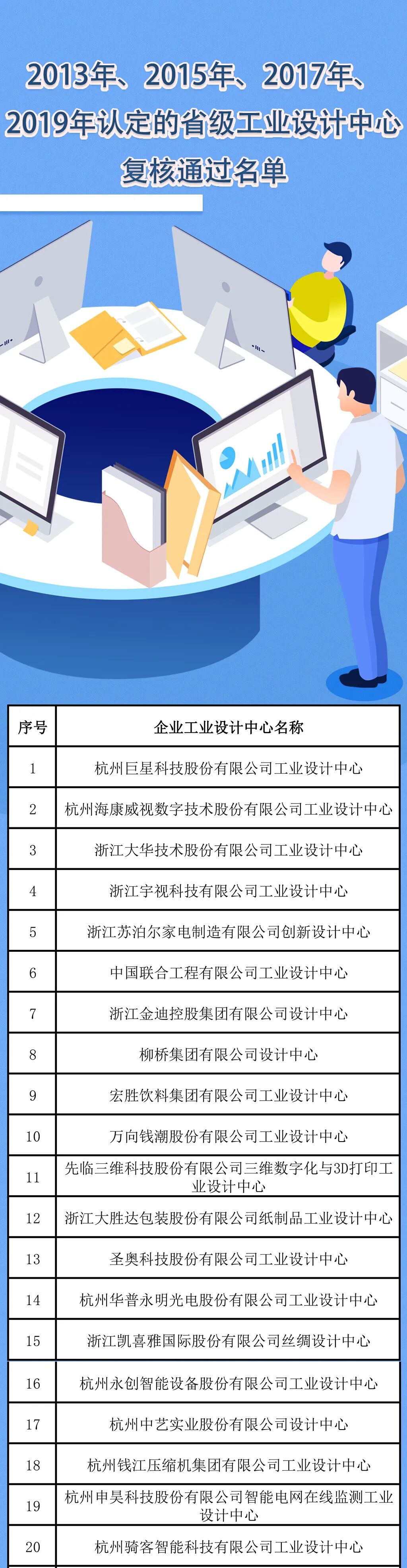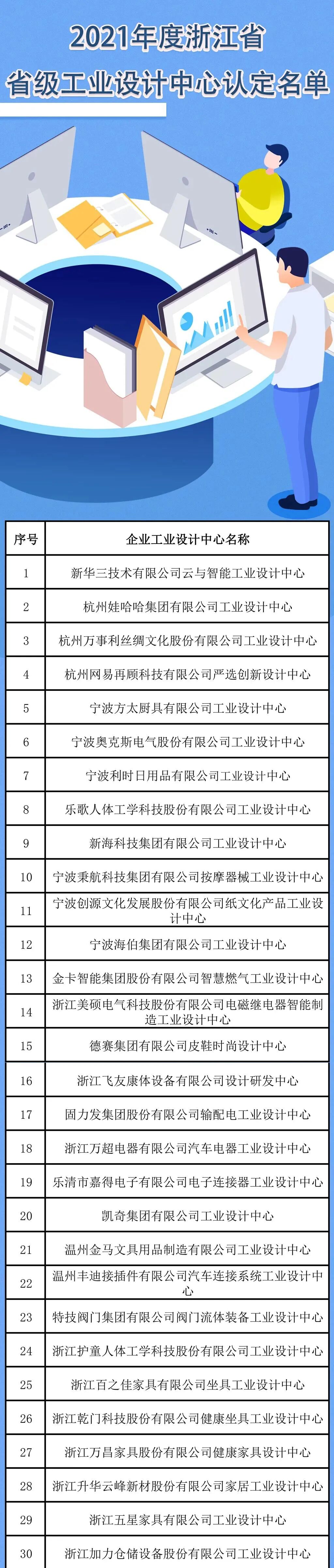 近日,经企业申请、所在地经信局初审、专家评审和公示,浙江省经信厅决定新认定56家企业设计中心、15家工业设计企业为2021年度浙江省省级工业设计中心;确定236家省级工业设计中心通过复核。
