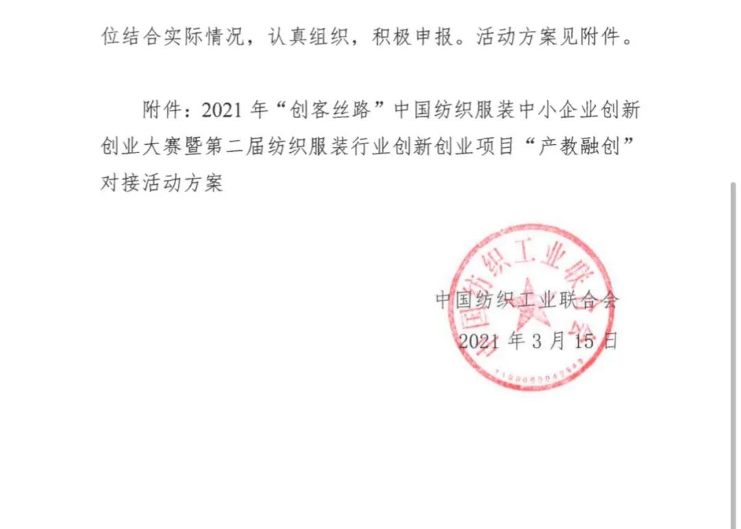 2021年“创客丝路 创新设界”中国纺织服装中小企业创新创业大赛暨第二届纺织服装行业创新创业项目“产教融创”对接会