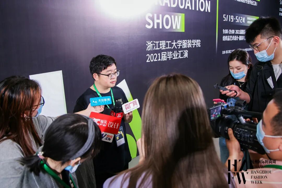 杭州国际时尚周组委会秘书长顾小华接受媒体采访