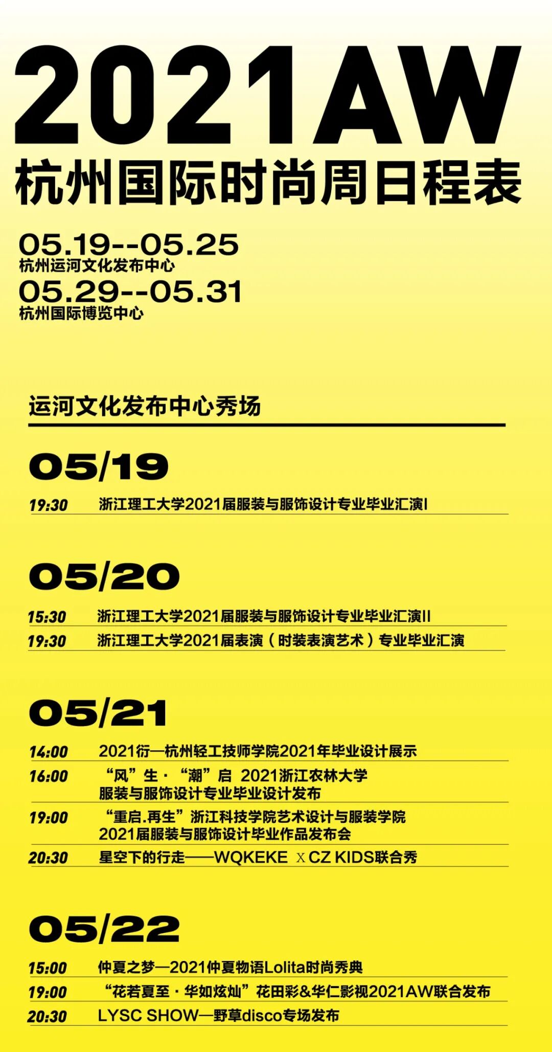 5月19日-5月25日期间,时尚周将在运河文化发布中心展开为期7天的秀场发布: