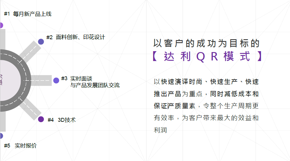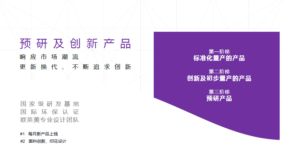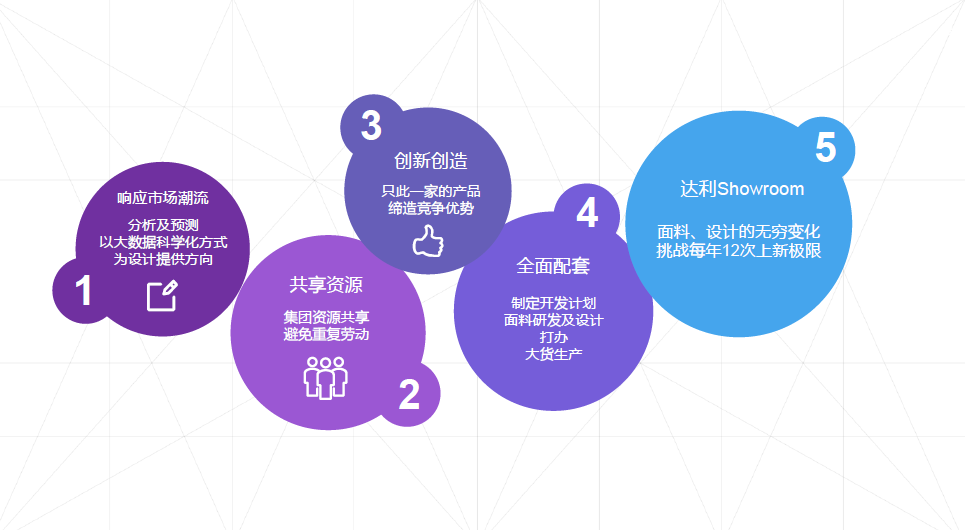 2014年起布局产业平台,以完善的丝绸工业为基础,创建以创意创新为主题的生态商务示范区--睿创世界,其融合星工坊、联合办公、Showroom三大功能平台,汇集时尚孵化、众创空间、互联网+概念、研究及开发平台的立体服装生态圈。目前正积极开拓国内市场,为初创、中小企业公司提供全服装产业链上下游的专业服务。