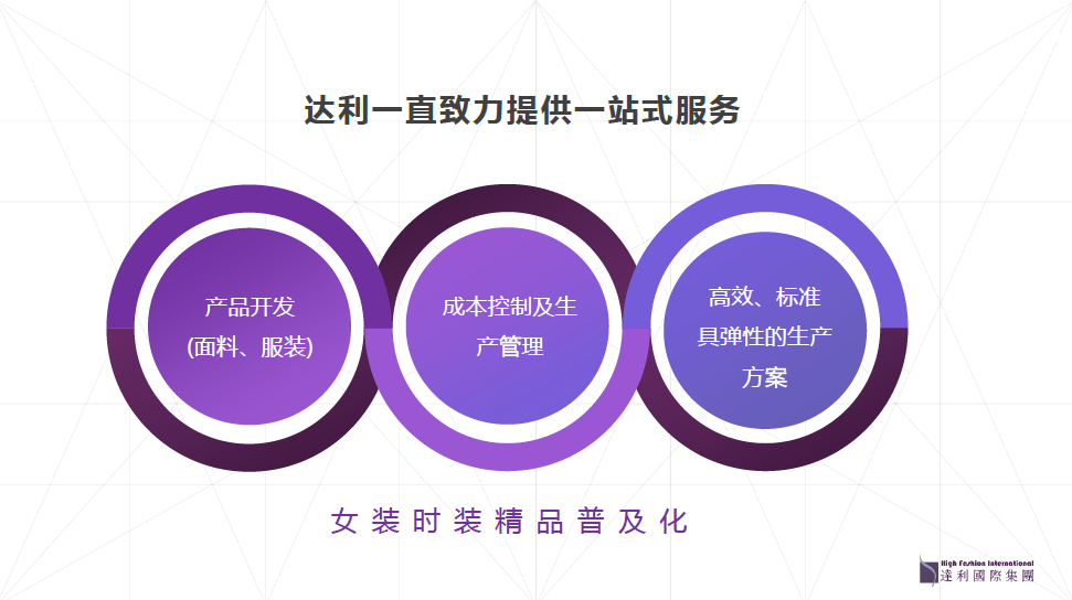 达利国际集团成立于1978年,并于1992年在香港上市,拥有先进制造、品牌零售、产业平台三大核心产业,是一家覆盖纺织、印染、服装、设计研发、生产、品牌零售、产业园区、学院于一体的全产业链、现代化、创新型丝绸时尚企业。