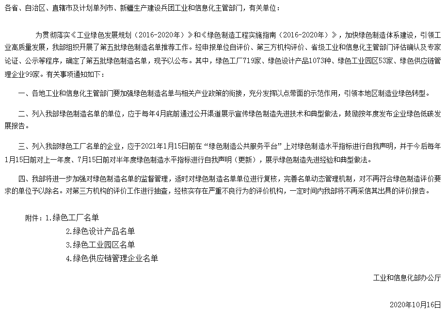 在第五批绿色制造名单中,有多项纺织服装类企业入围,具体包括: