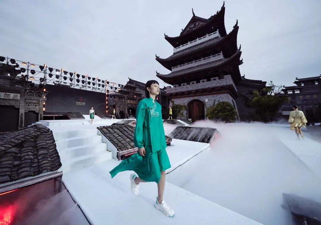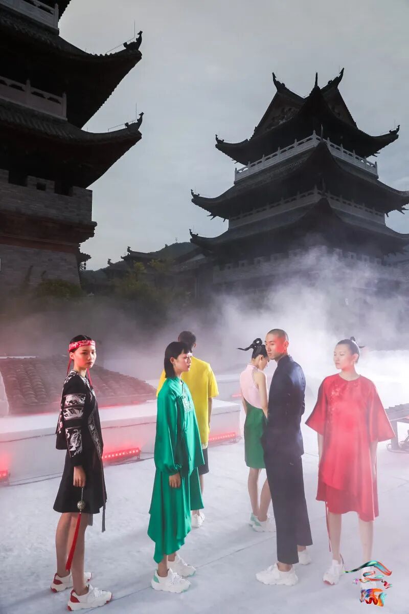 在艺术领域任何事物都不是眼前所见之表象,艺术表现形式就是在生活中为人塑造一场完美幻想。当缥缈云海漫过原生态的畲族民居屋顶,参差碧瓦间即是舞台,模特们身着各式极具民族风味的参演服饰行走其中,色彩随雾霭弥漫,声光伴夜色流动,如梦似幻的仙境疑是蜃楼落人间,在现实中与我们相遇。