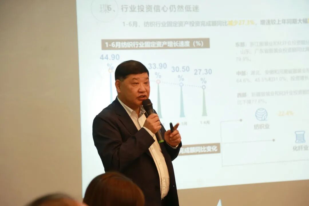 浙江省服装行业协会顾问、中国服装协会产业经济研究所所长陈国强发表讲话。陈顾问就如何看待全球化经济和两个市场问题发表了自己的观点。他提出,要正确分析目前产业趋势存在的原因,以数字化、平台化、融合化、高端化、时尚地标化来统筹布局。同时,陈顾问强调行业协会的重要性,要充分发挥“粘合剂”作用,做好政府与企业之间的链接工作,进一步推进产业合作发展。