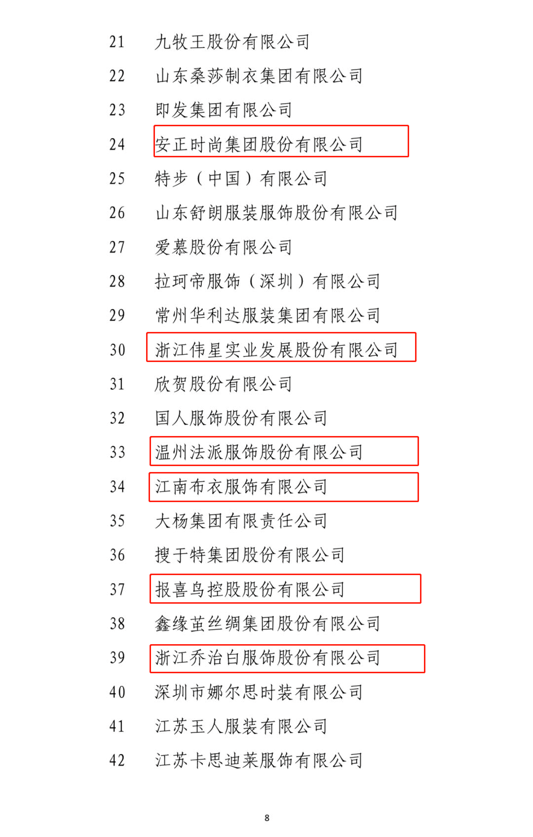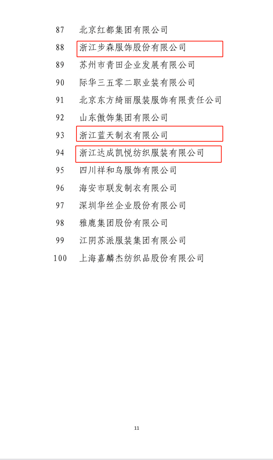 我省服装行业在过去一年中积极应对各种风险和挑战,以供给侧结构性改革为主线,着力推进科技进步和模式创新,行业整体保持平稳发展,实现由规模发展向质量发展的转变。协会始终致力于推动“浙江服装”区域品牌的知名度、助力企业提升核心竞争力。此次上榜的26家浙江企业,是我省服装产业创新发展的代表性力量和榜样!恭喜上榜企业!以下附上百强企业名单。