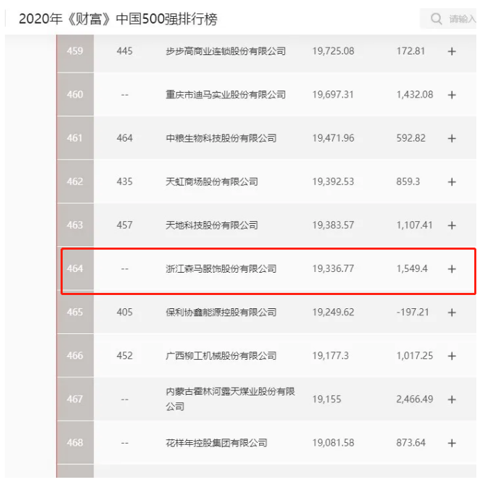 7月27日,财富中文网发布了2020年的《财富》中国500强排行榜,浙江森马服饰股份有限公司以193亿元的营业收入首次入围榜单。