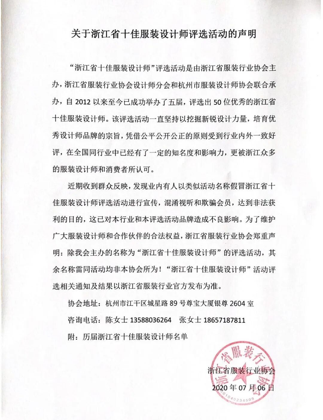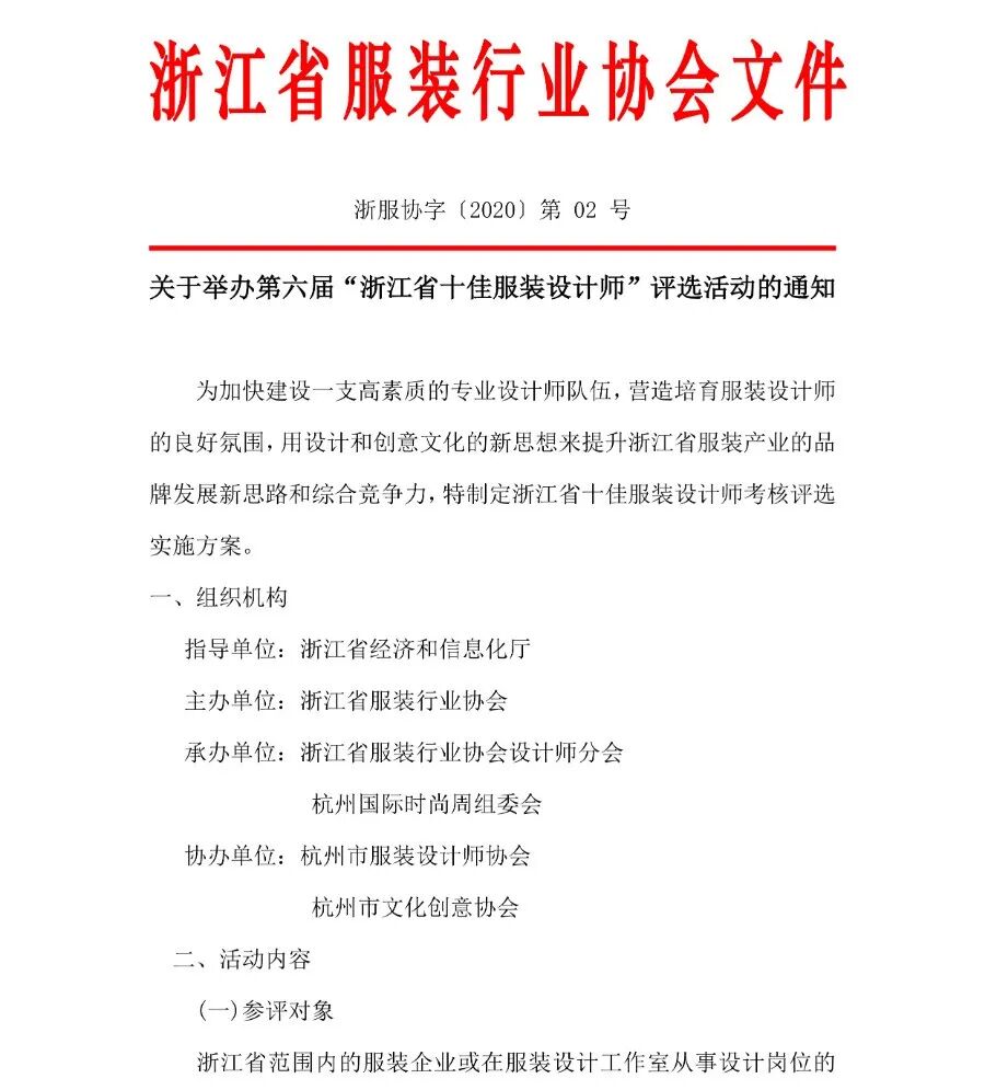 第六届浙江省十佳服装设计师评选活动通知