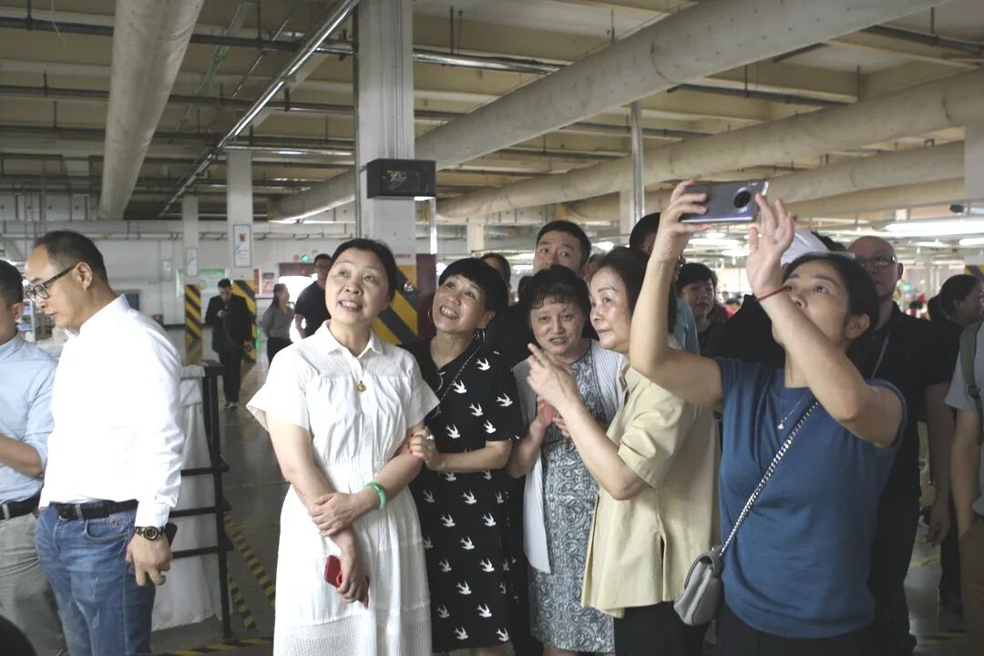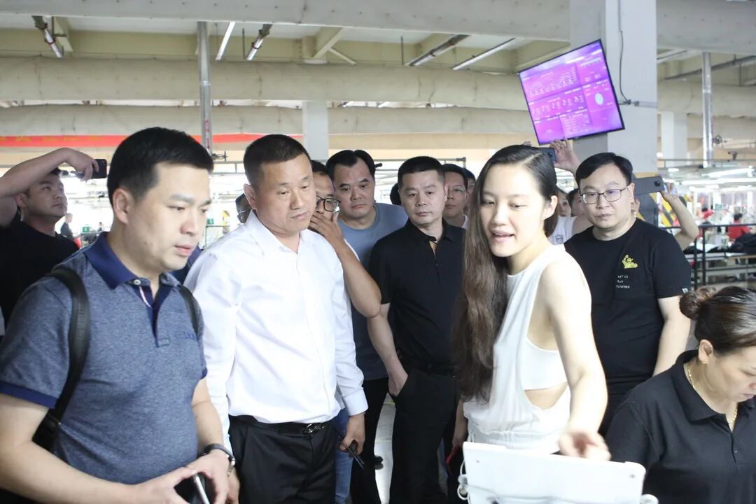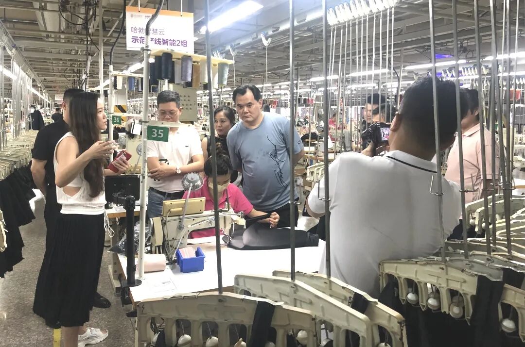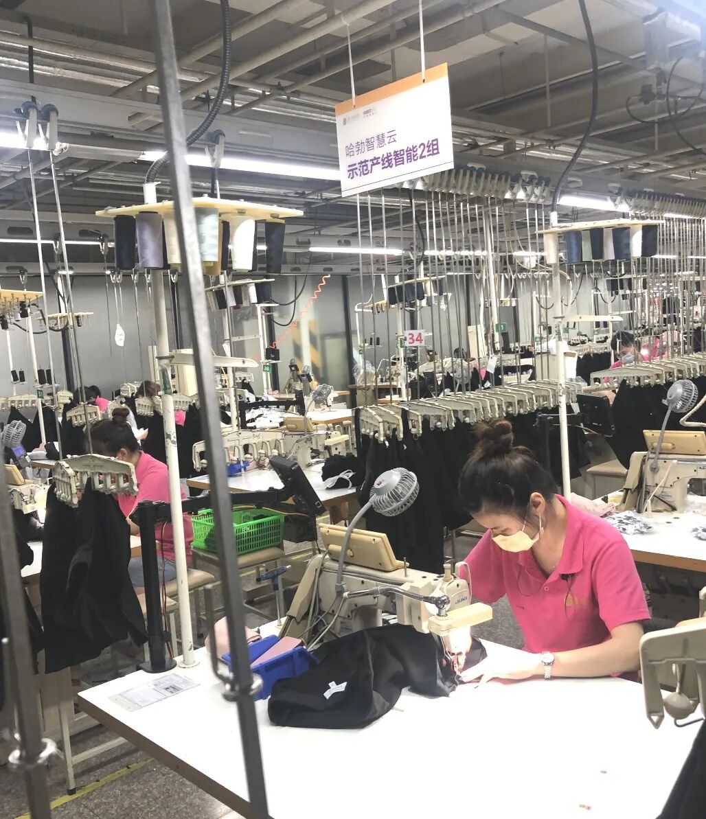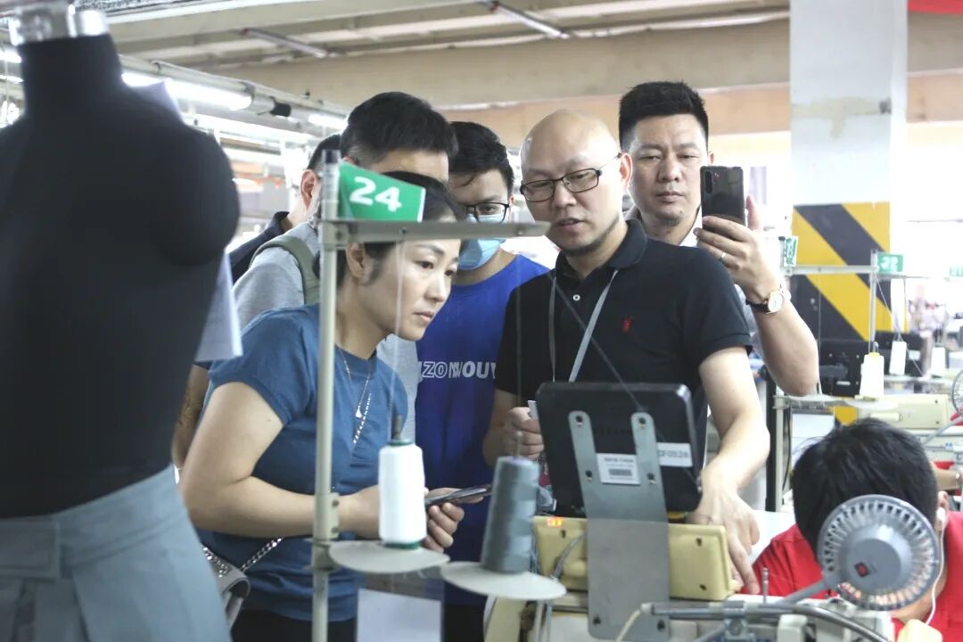 在随后的参观中,高敏会长和她的团队骨干向大家介绍了车间的改造项目:在新的生产线上,每台缝纫机都装了一台智能设备,可以抓取缝纫机的数据,同时又可以指导工人进行每一步操作工序;在质量追踪方面,沉淀下来的数据,也能追溯到每个工人的每一道工序,让服装生产线上工人的工作效率和产品质量变得有据可循。