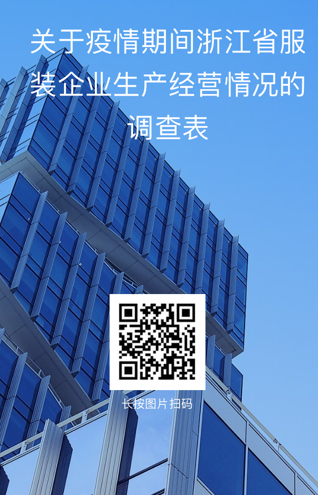 为了更好了解新型冠状肺炎疫情对浙江省服装企业生产运营的直接影响,以及企业目前遇到的困难和应对措施,本会对全省范围内的会员单位开展问卷调查,请各企业积极配合,按实际情况填写。所提供的所有信息将受到严格的保密使用。