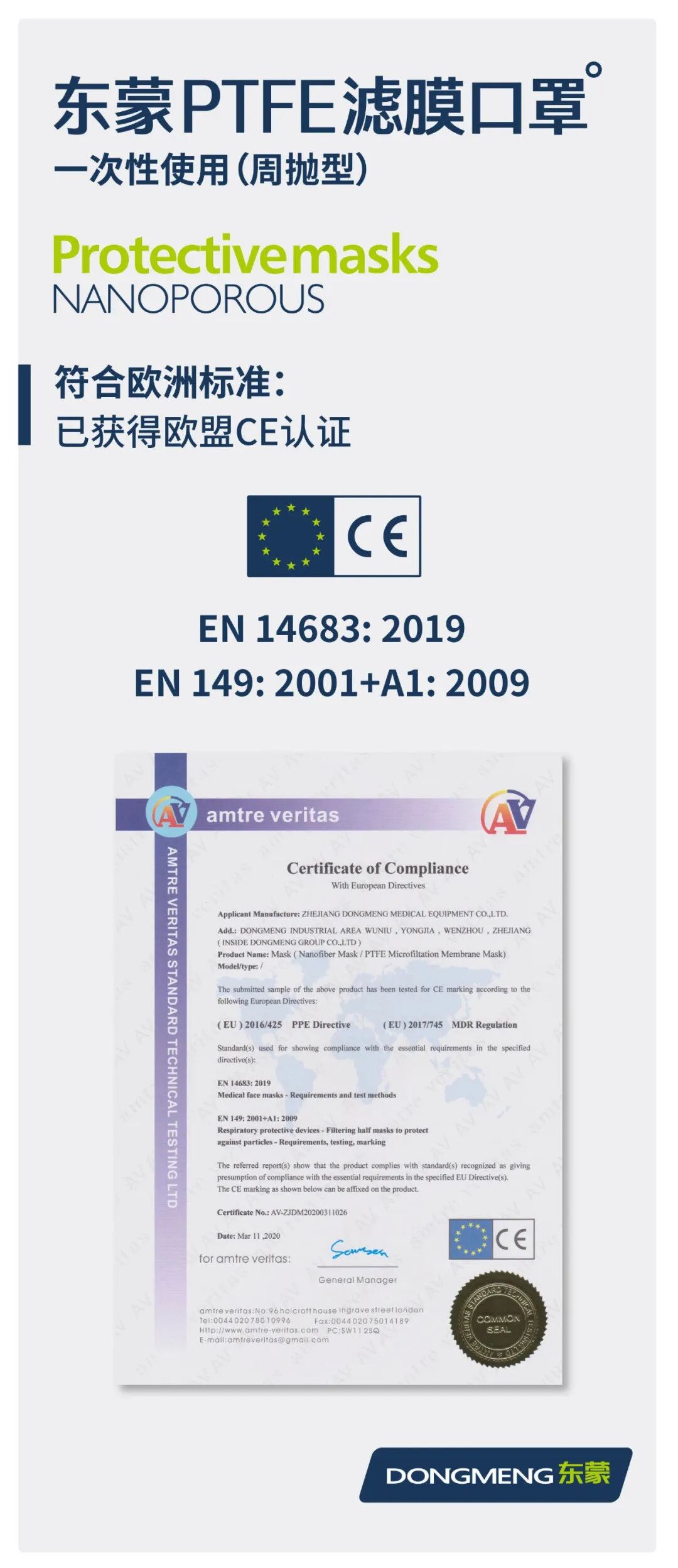 协会副会长单位东蒙集团研发生产的PTFE滤膜口罩经第三方机构检测认定,符合医用外科口罩标准。