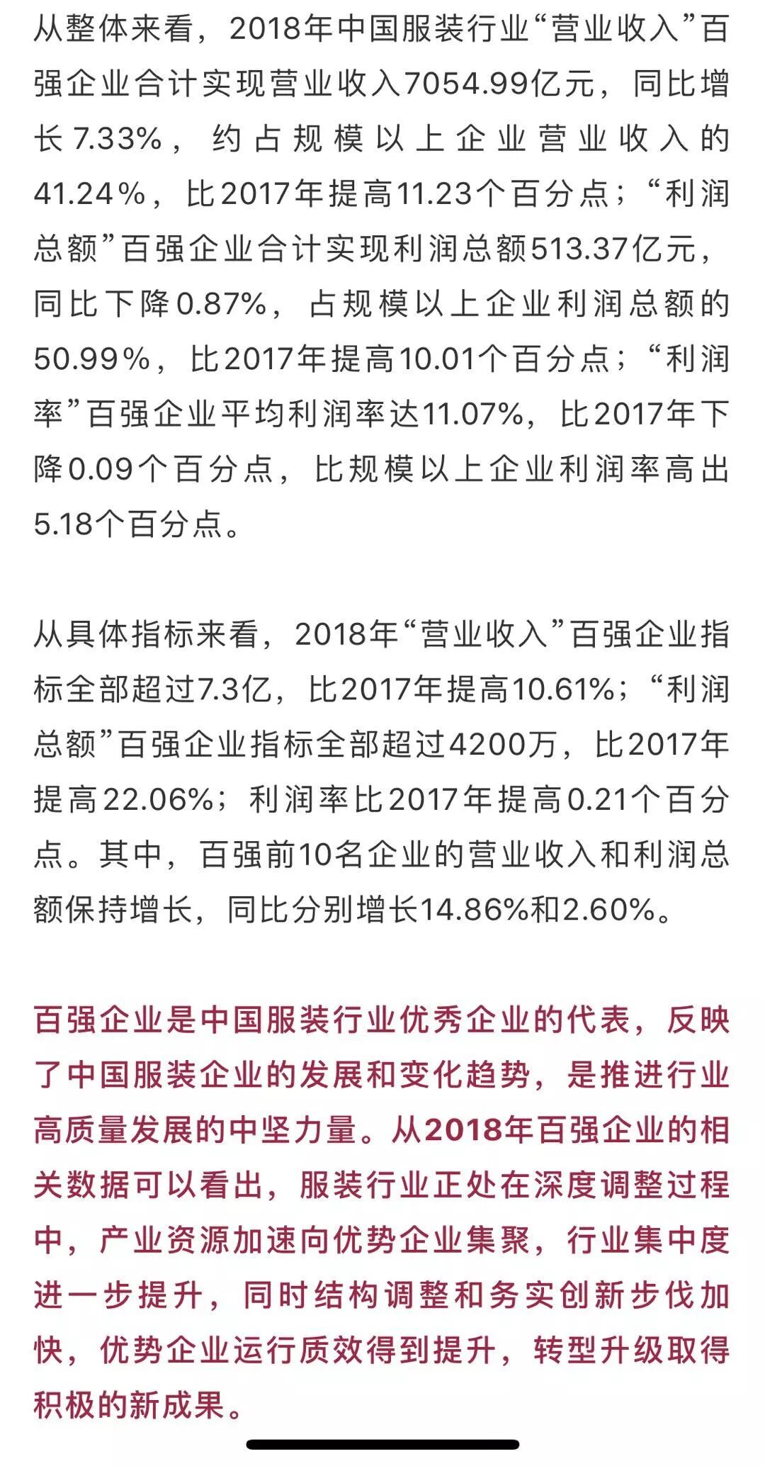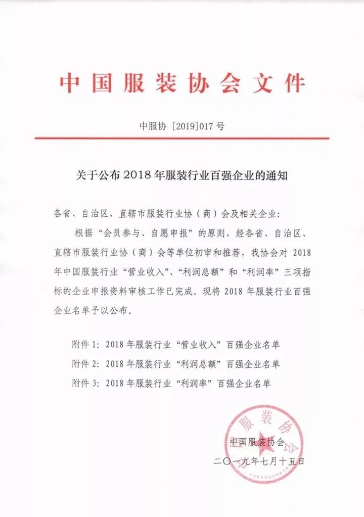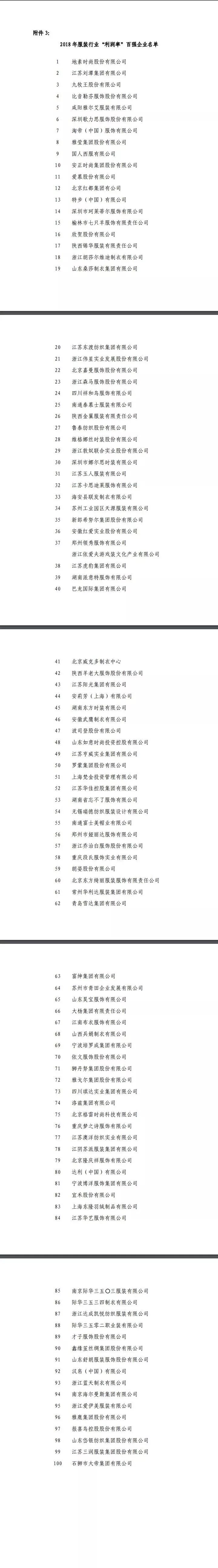 7月15日,中国服装协会发布了“2018年服装行业百强企业”名单。全国共有130家企业榜上有名,其中:江苏31家、浙江28家、山东15家、北京12家、广东9家、福建上海陕西各6家、四川湖南各3家、安徽重庆河南山西辽宁各2家、河北1家。在公布的名单中,我协会推荐的28家企业全部上榜,占上榜总数的 21.5%。其中,“营业收入”百强企业25家,协会副会长单位雅戈尔集团控股有限公司、杉杉控股有限公司、太平鸟集团有限公司、浙江森马服饰股份有限公司等4家企业进入“营业收入”榜单前十;“利润总额”百强企业24家;“销售利润率”百强企业21家。