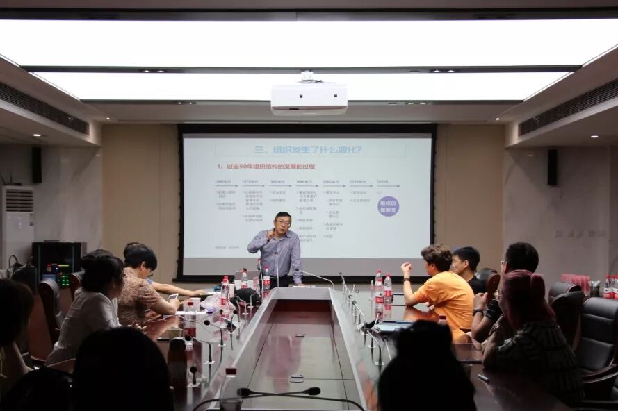 下午钱老师以韩都衣舍的“阿米巴”系统、海尔的“人单合一”体系、阿里的“大中台、小前台”模式为案例,提出未来企业组织应不断革新,向平台化、专业化、整合化、共享化发展。