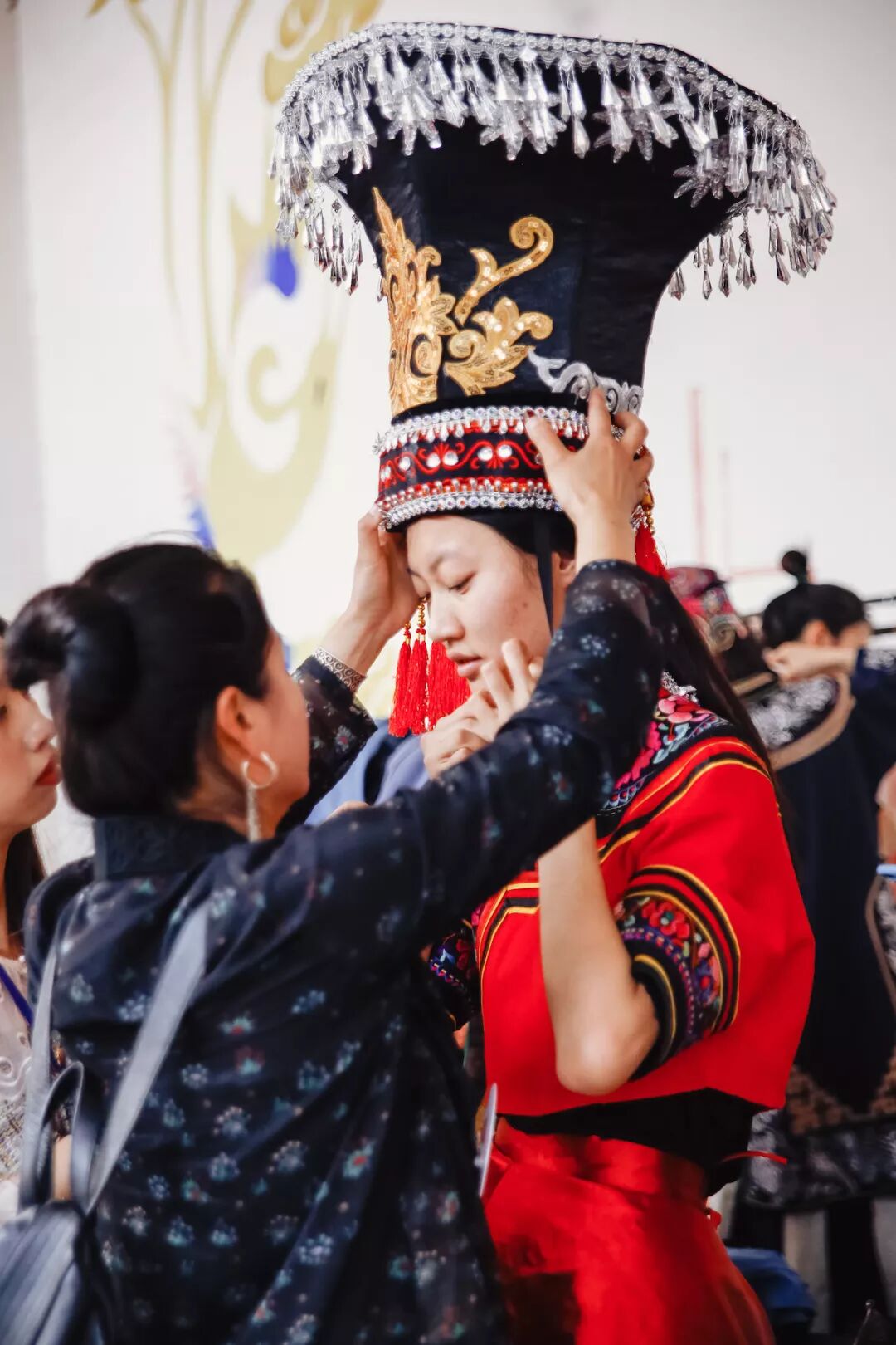 伴随着T步音乐的响起,模特们华丽得登上舞台,千姿百态的各民族服装、精巧细致的民族饰品,一场视觉盛宴拉开帷幕。