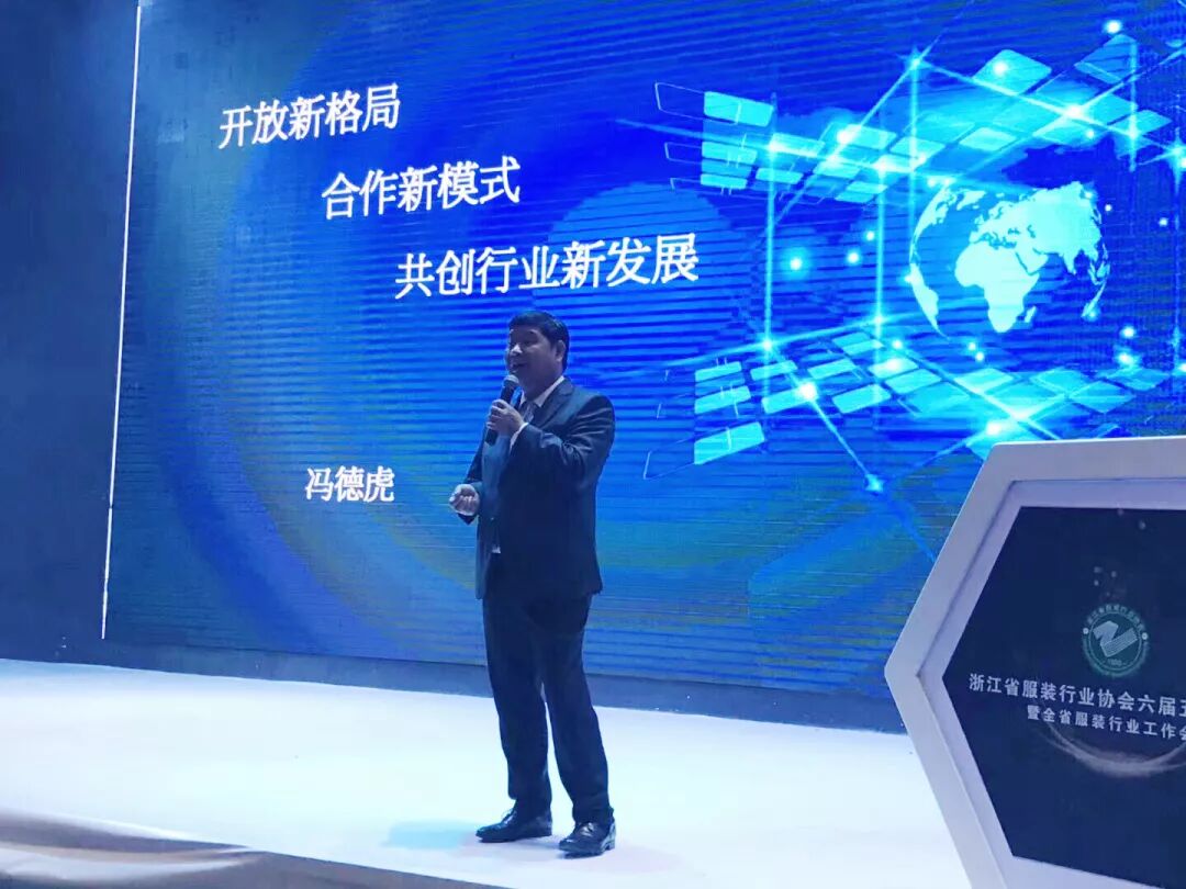 协会会长冯德虎向大会作题为“开放新格局 合作新模式 共创行业新发展”的行业发展情况报告。报告主要从产量、运行质效、出口、投资等方面回顾了2017年全国及我省服装行业发展情况和运行特点,结合解读江苏、广东、浙江、山东、福建前五大服装大省在创新发展道路上的主要做法,提出了新形势下行业要创新、高质量发展的主要路径。