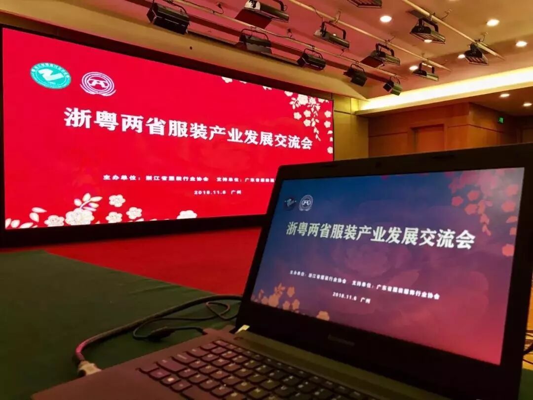 会议由协会秘书长沈茉莉主持。广东省服装服饰行业协会会长、红棉国际时装城总经理卜晓强致欢迎词。卜会长介绍了广东省服装产业的现状以及服装市场的特色, 并期待浙粤两省协会保持紧密的联系,共同促进两省服装产业合作发展。