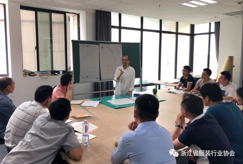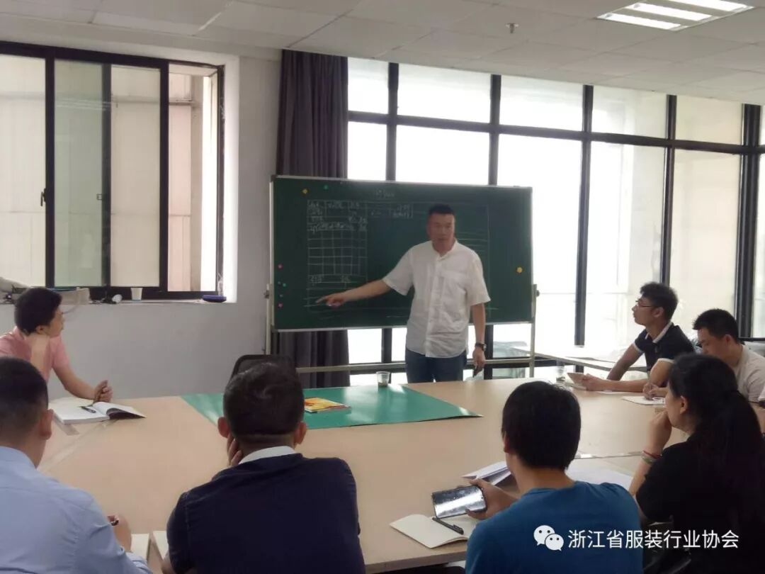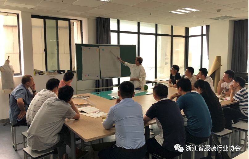 上午培训由郑小飞副会长作主讲老师。郑会长首先发表赛前集训动员讲话,鼓励选手做好充分准备,在比赛中获得好成绩。随后,郑会长给选手们上服装理论课程,包括纺织原材料、设计、样板、工艺文件、品质管理等内容。