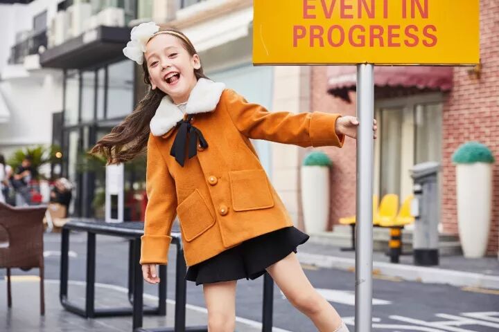 这一季的设计灵便是感源于星空,淡蓝色为星空的背景,零散的黄色星星布满衣身,孩子们穿上她,就像自己真真切切地将幻想的浪漫星空穿在身上。